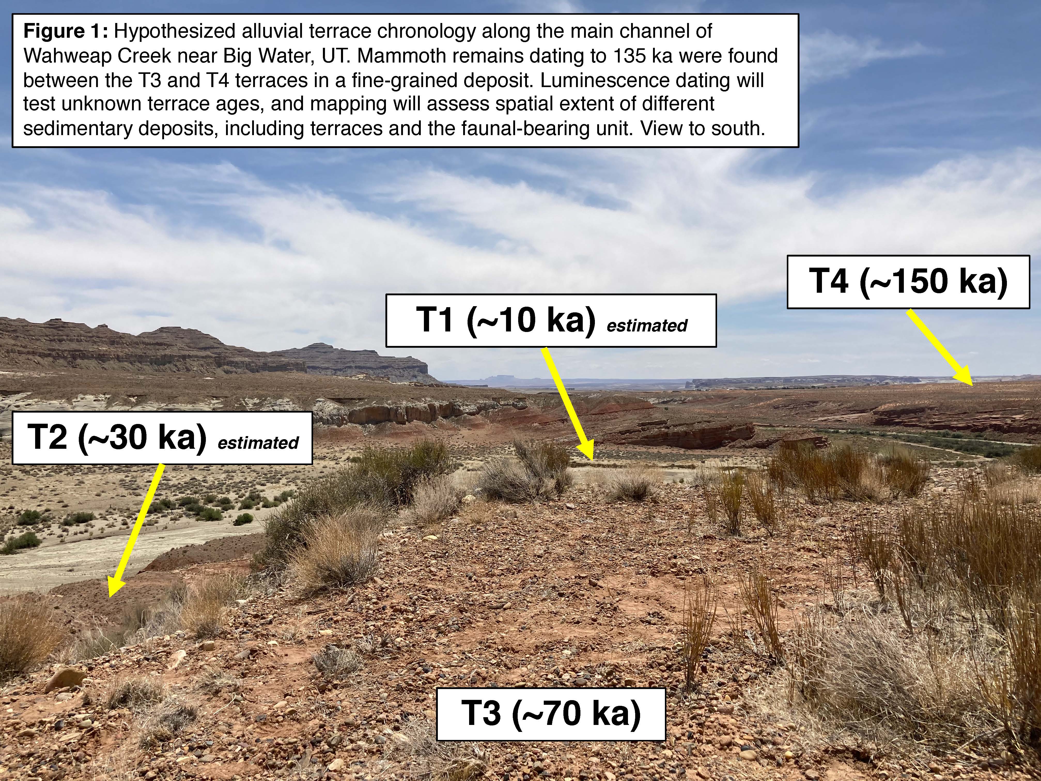 | Name: Noah Slade School: Utah State University Research Statement: The Sedimentologyof Wahweap Creek and its Tributaries: Linking Mammoths, Climate, and Incisions Records in Southern Utah