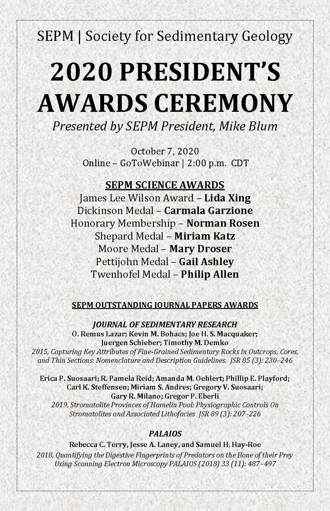 As always, SEPM recognizes the members of the 2020 Annual Meeting Organizing Committee, without whom the meeting would not have taken place, and SEPM Foundation Student Grant recipients.