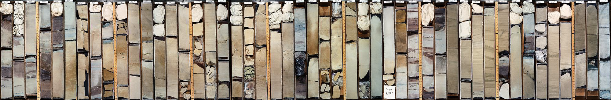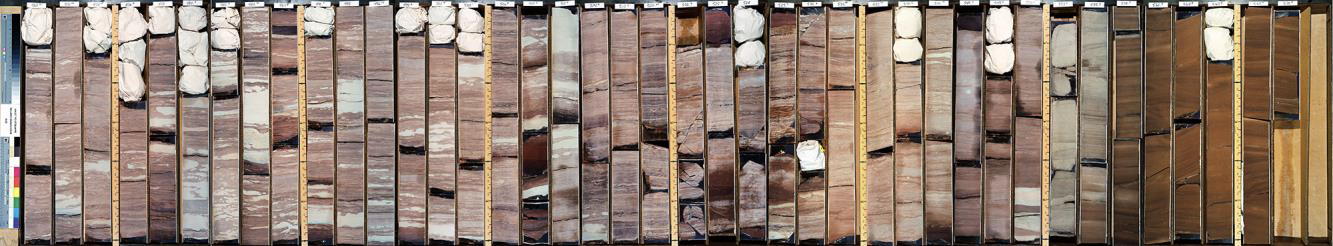 Shootaring Canyon core was drilled just behind a cliff face of amalgamated fluvial sandstones. It extends from the upper Salt Wash Member down to the top Entrada Sandstone.